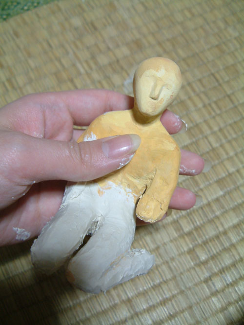 今日は足に粘土を付け足したので、今足だけ白いです。